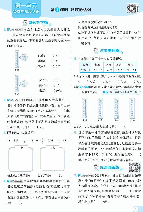 25秋 典中点 一年级数学上(XS版)