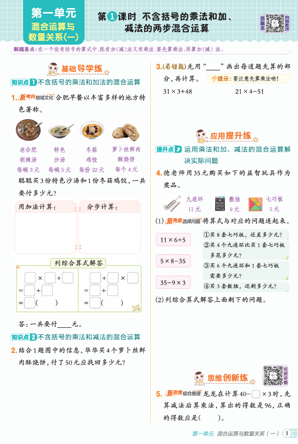 25秋 典中点 四年级数学上(R版)