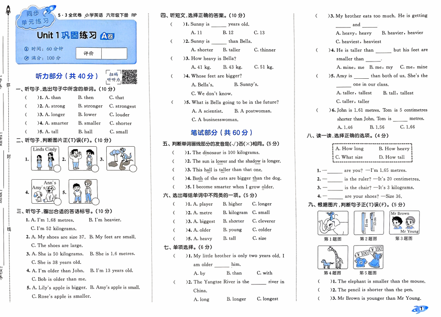 25春53全优卷人教英语6下