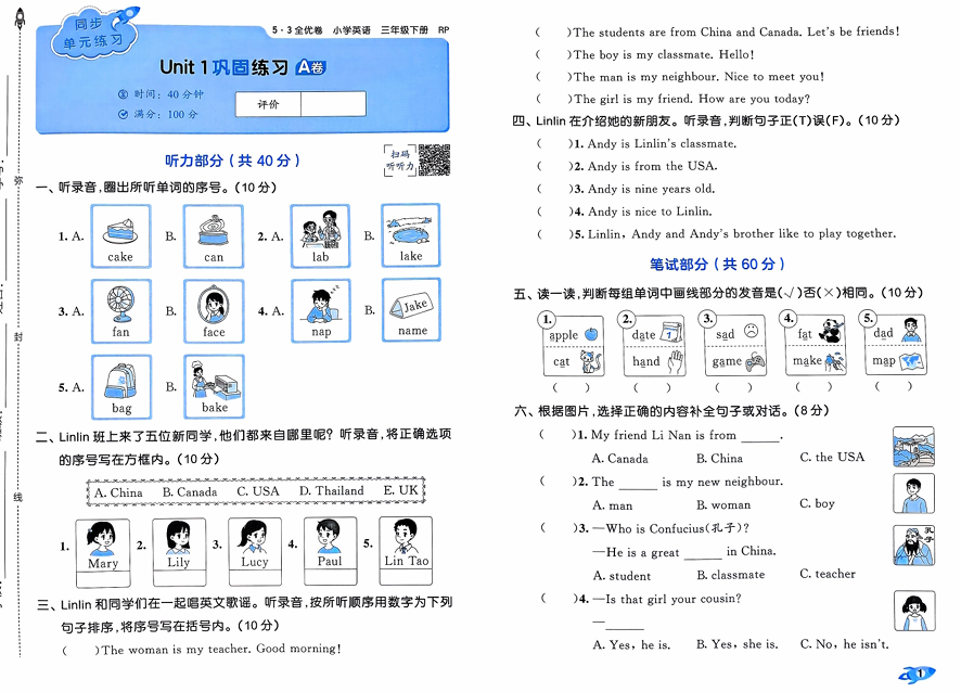 25春53全优卷3下英语(PEP)