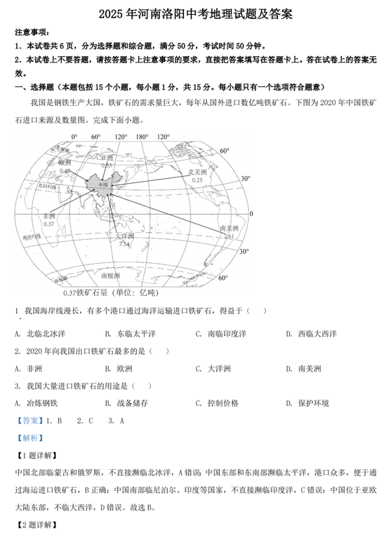 2025年河南洛阳中考地理试题及答案