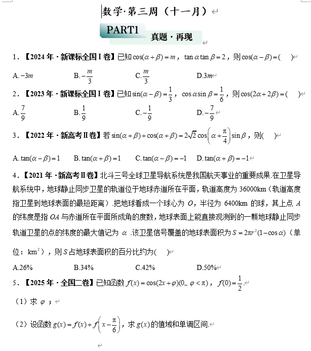 2026届高考数学真题周计划三角函数训练——数学第三周(十一月)