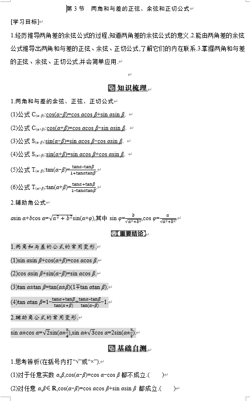 4.3两角和与差的正弦、余弦和正切公式学案-2026届高三数学一轮复习