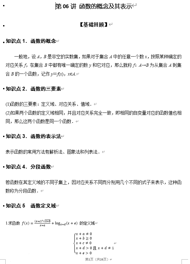 第06讲+函数的概念及其表示讲义——2026届高三数学一轮复习