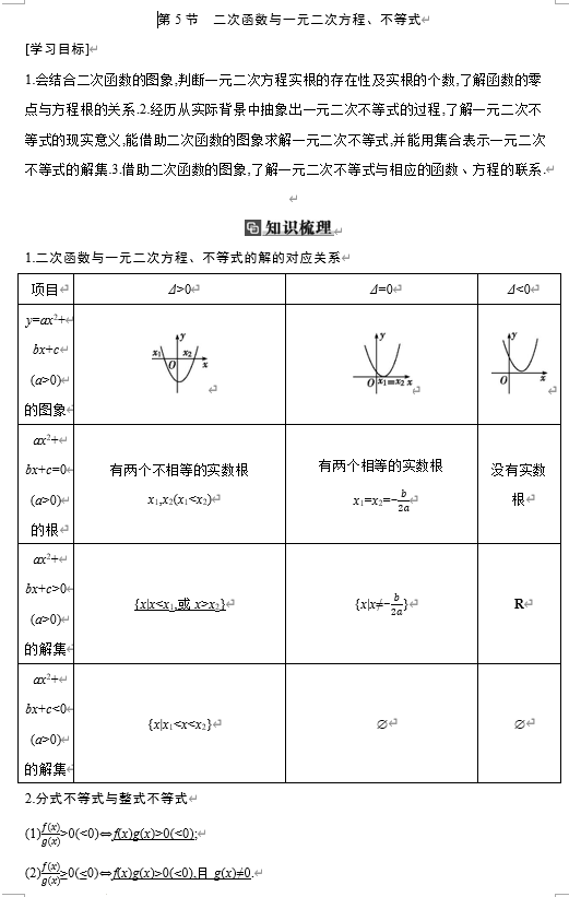 1.5二次函数与一元二次方程、不等式+学案-2026届高三数学一轮复习