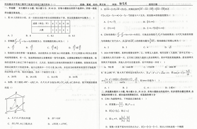 2025衡水高考数学模拟金卷【信息卷6套】试卷及答案