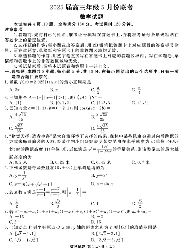 衡水金卷先享调研2025年普通高等学校招生全国统一考试模拟试题(一)数学