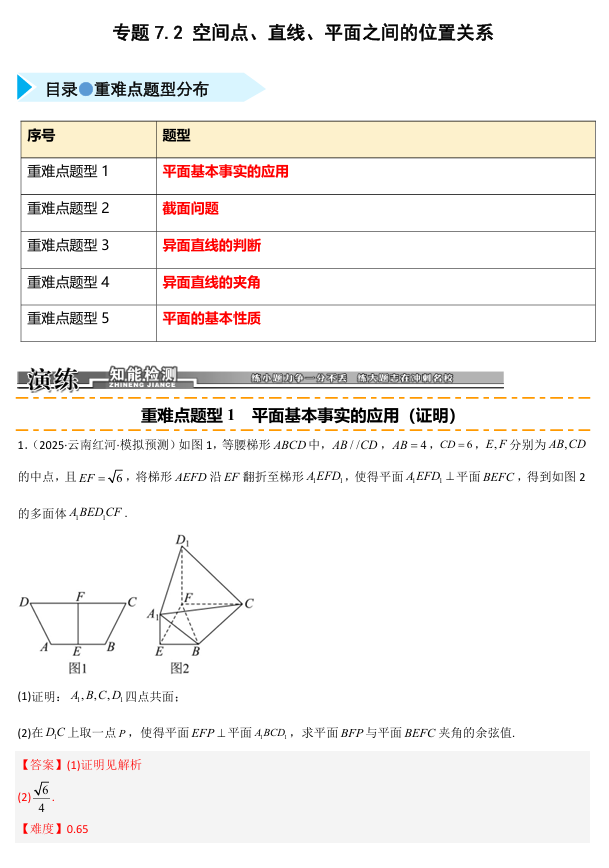 2026《高考数学•一轮复习重点难点题型》精练 专题7.2 空间点 直线 平面之间的位置关系(五类重难点题型精练)