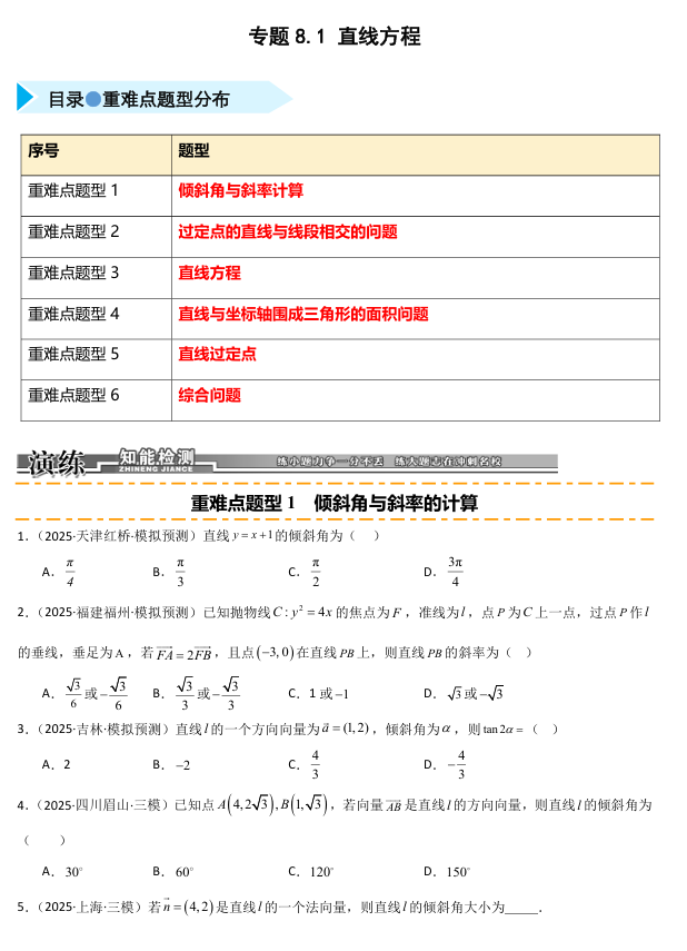 2026《高考数学•一轮复习重点难点题型》精练 专题8.1 直线方程(六类重难点题型精练)