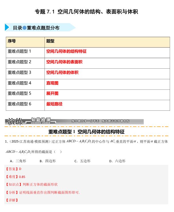 2026《高考数学•一轮复习重点难点题型》精练 专题7.1 空间几何体的结构、表面积与体积(六类重难点题型精练)