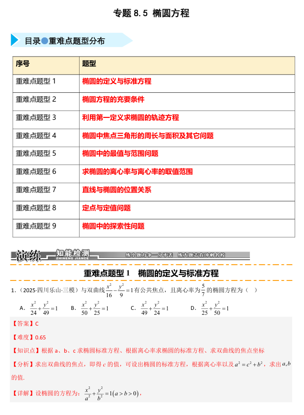 2026《高考数学•一轮复习重点难点题型》精练 专题8.5 椭圆方程(九类重难点题型精练)