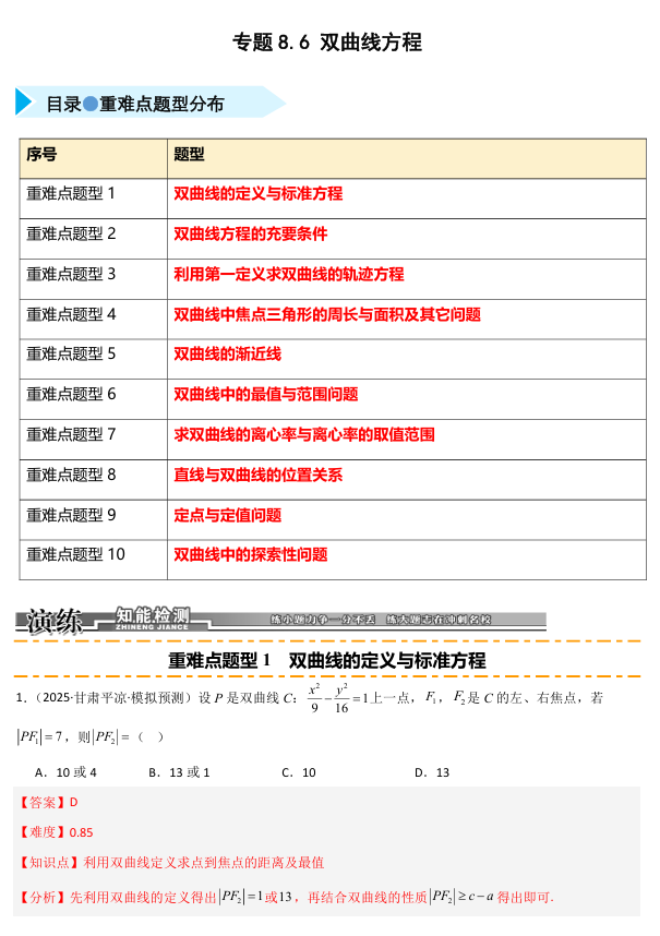 2026《高考数学•一轮复习重点难点题型》精练 专题8.6 双曲线方程(十类重难点题型精练)