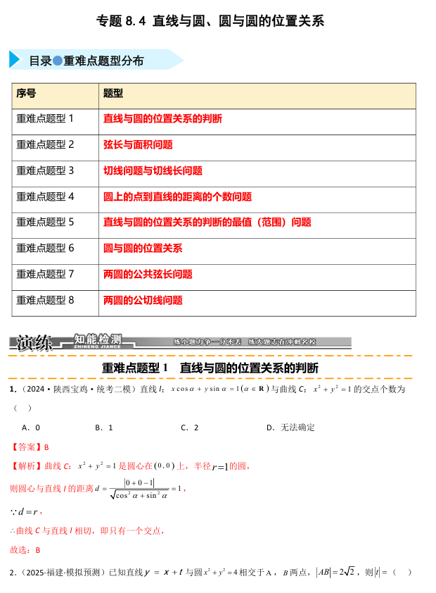 2026《高考数学•一轮复习重点难点题型》精练 专题8.4 直线与圆、圆与圆的位置关系(八类重难点题型精练)