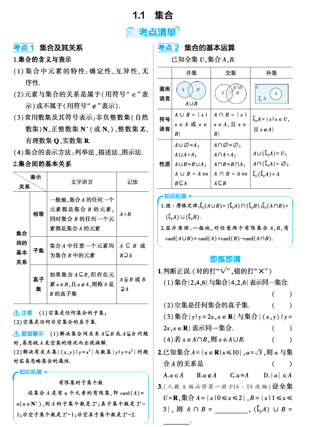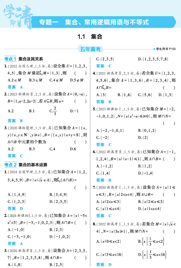 2026《53高考总复习A版》数学 精练册 1 1 集合