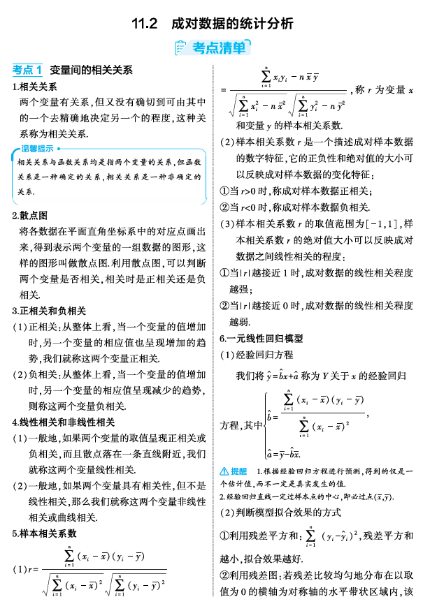 2026《53高考总复习A版》数学 精讲 11 2 成对数据的统计分析