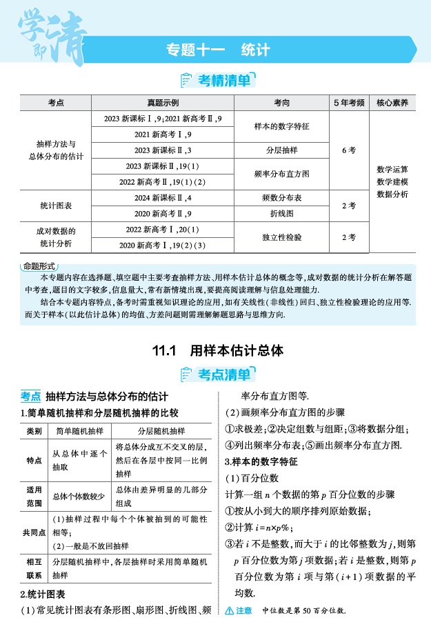 2026《53高考总复习A版》数学 精讲 11 1 用样本估计总体