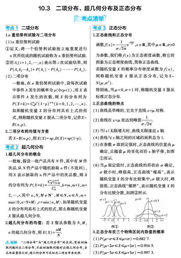 2026《53高考总复习A版》数学 精讲 10 3 二项分布 超几何分布及正态分布