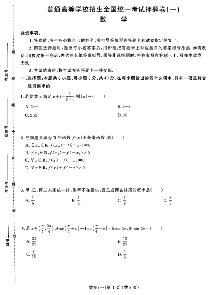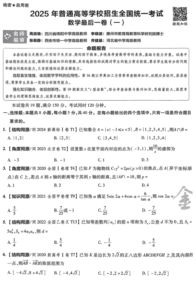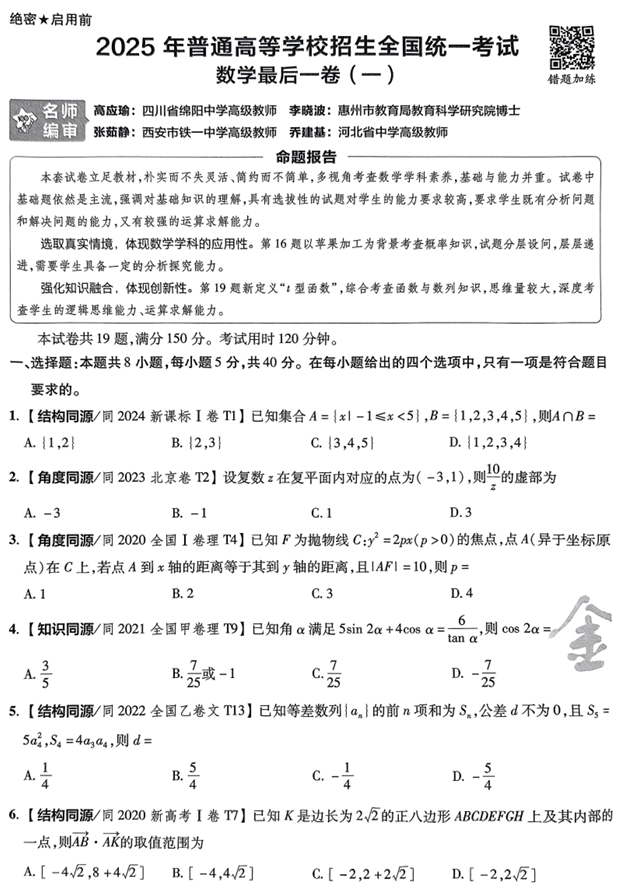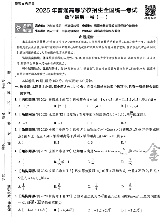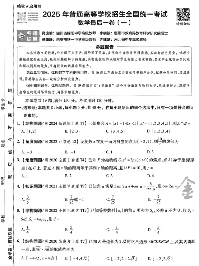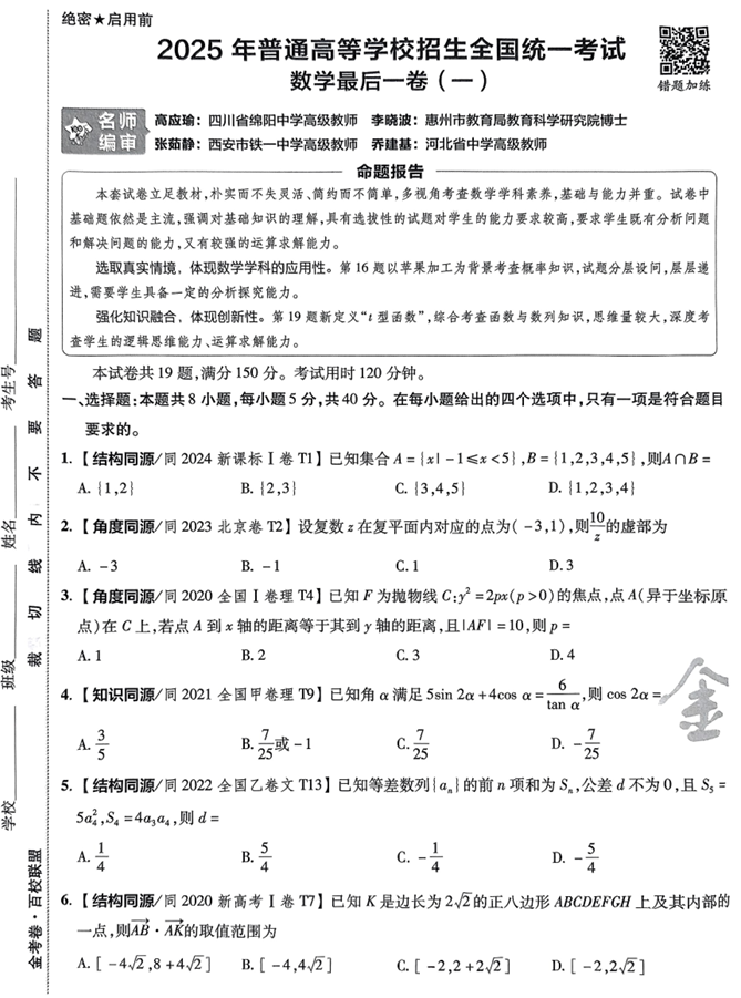 2025年《金考卷·百校联盟·最后一卷》数学A4
