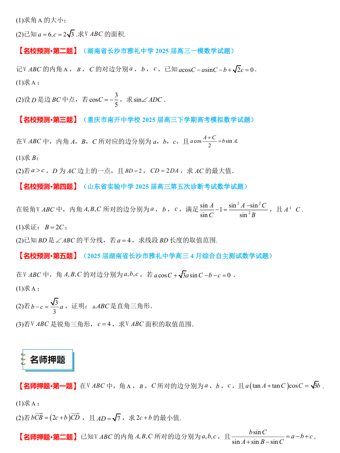 (湖南专版)2025年《金考卷·百校联盟·最后一卷》数学A4
