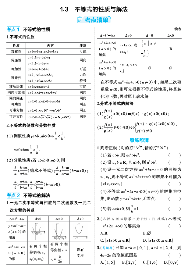 2026《53高考总复习A版》数学 精讲 1 3 不等式的性质与解法