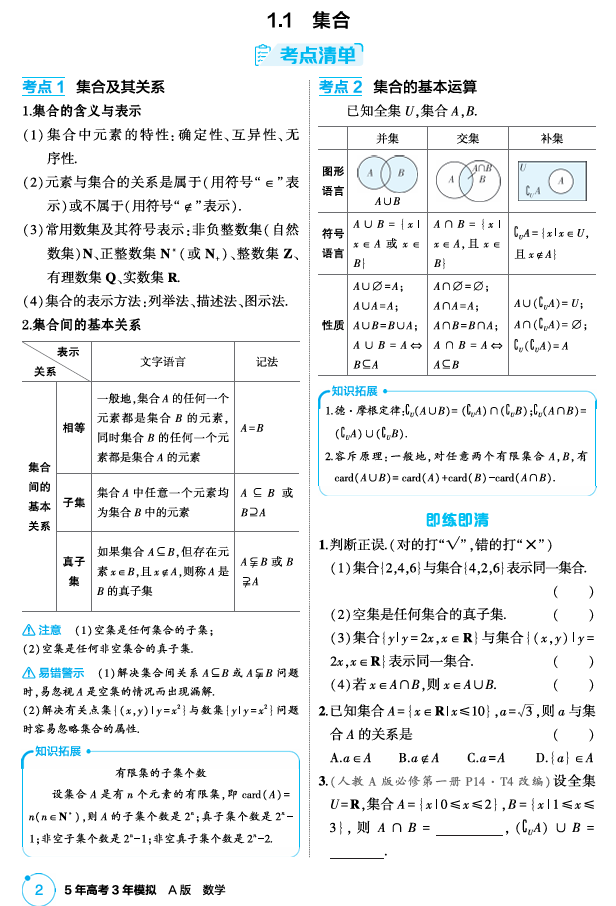 2026《53高考总复习A版》数学 精讲 1 1 集合