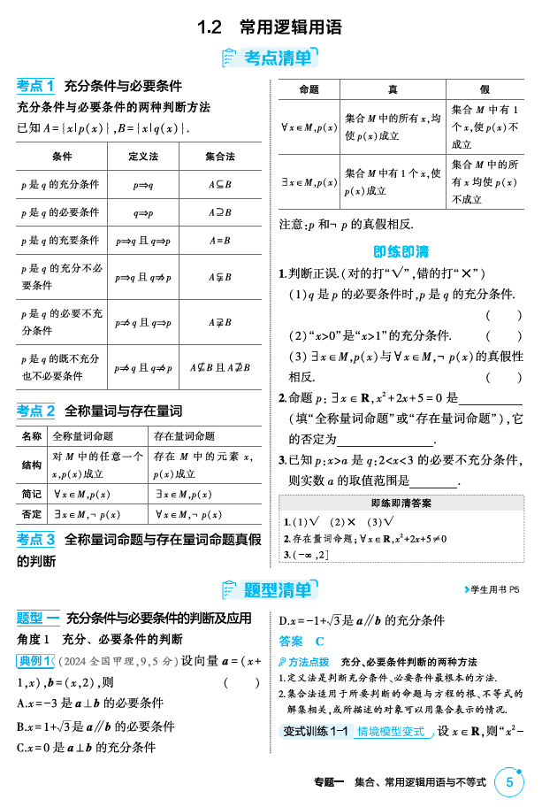 2026《53高考总复习A版》数学 精讲 1 2 常用逻辑用语