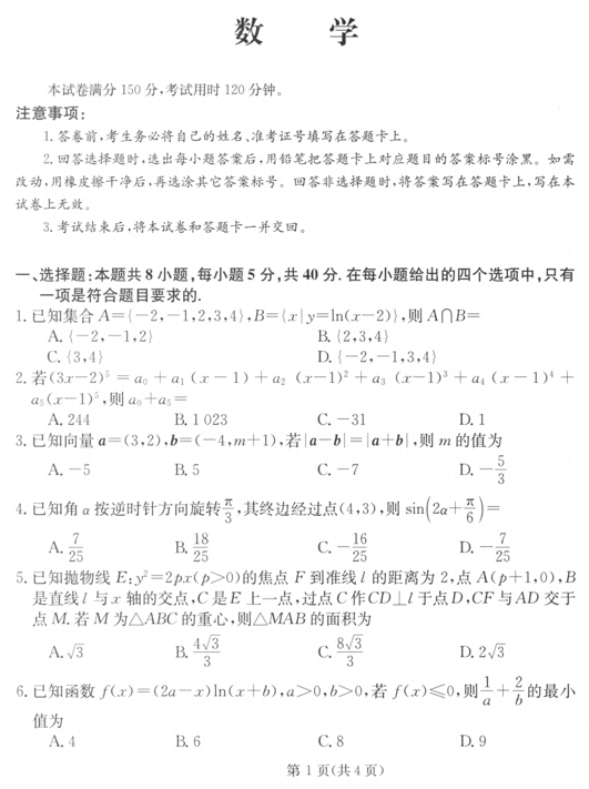 2025届东北三省精准教学高三下学期5月联考数学试卷