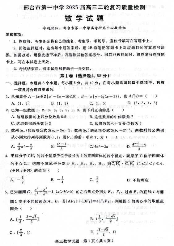 2025届河北省邢台市第一中学高三二轮复习检测数学试题