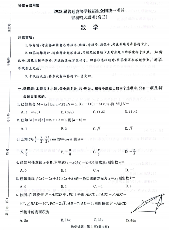 广西壮族自治区梧州市藤县第七中学等校2025届高三下学期5月仿真考试数学试题