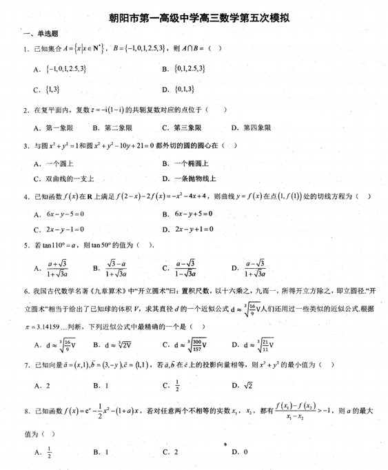 辽宁省朝阳市2024-2025学年高三下学期第五次模拟预测数学试题