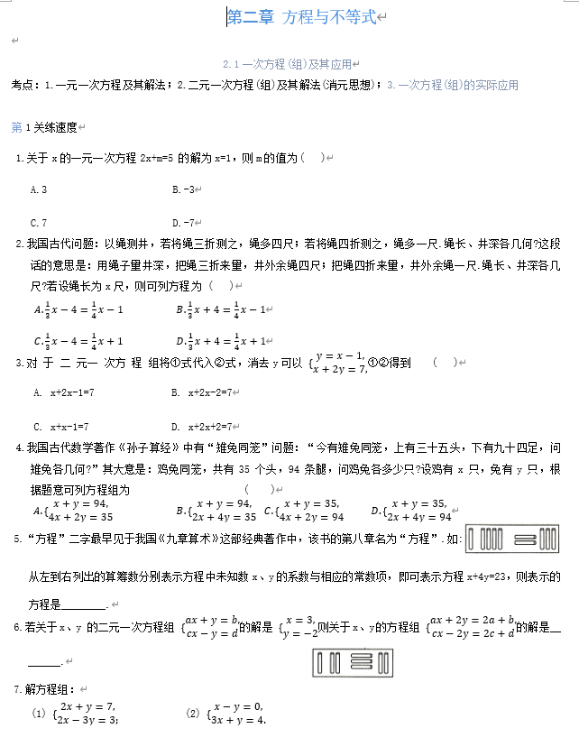 第二章+方程与不等式2.1一次方程(组)及其应用2025年苏科版九年级数学中考总复习+
