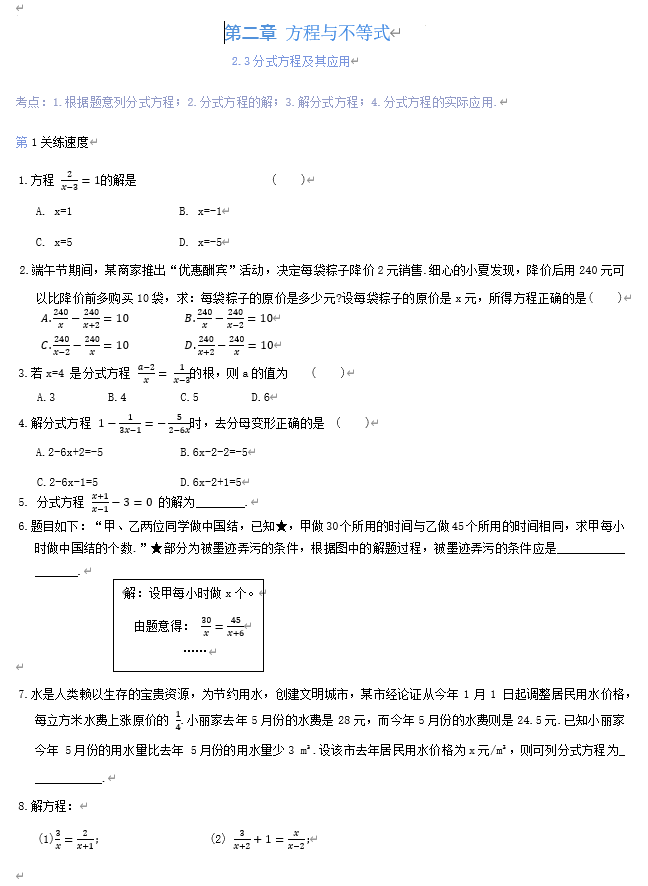 第二章+方程与不等式2.3分式方程及其应用2025年苏科版九年级数学中考总复习+