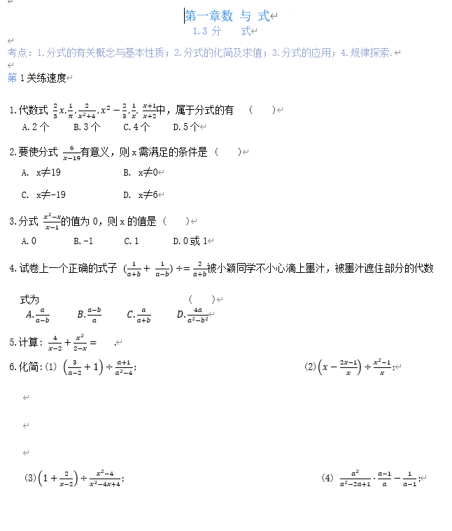 第一章数+与+式1.3+分式2025年苏科版九年级数学中考总复习+