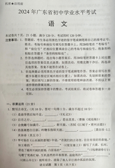 2024年广东省中考语文试题