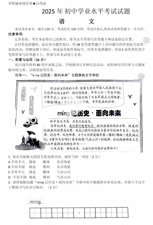 2025年四川省广安市中考语文真题