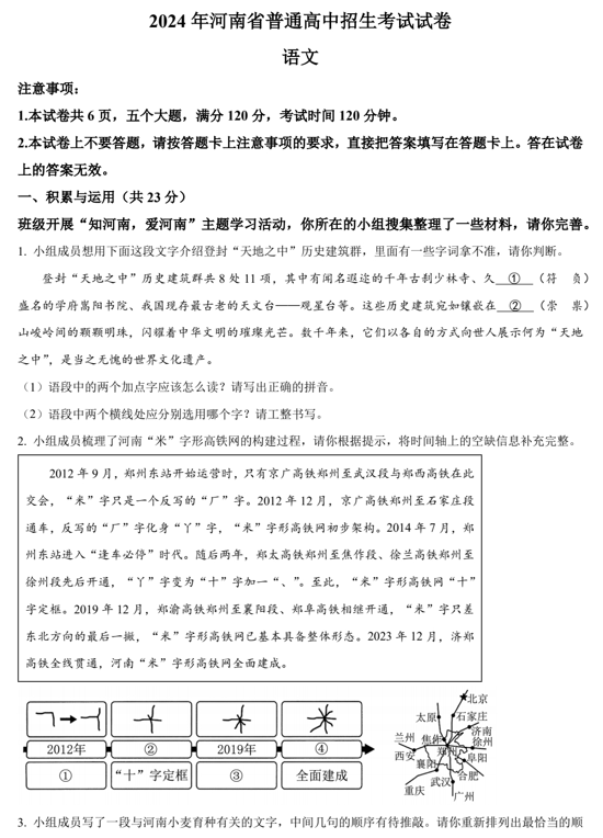 2024年河南省中考语文真题