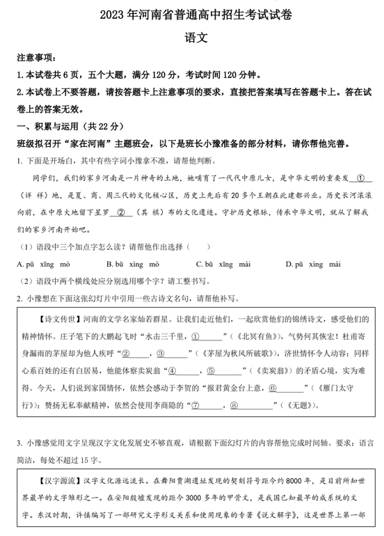 2023年河南省中考语文真题
