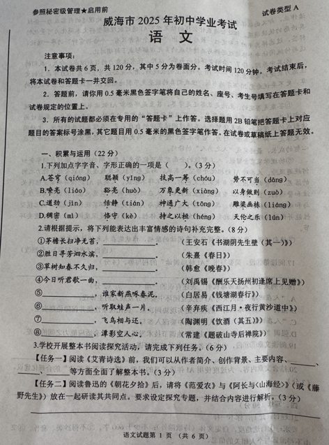 2025年山东省威海市中考语文真题