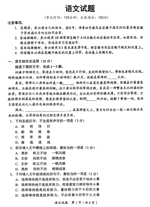 2024年浙江省中考语文真题
