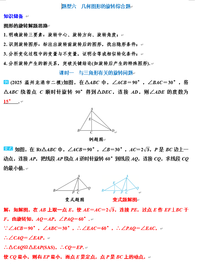 2026年浙江省中考数学二轮复习题型突破讲义:题型六++几何图形的旋转综合题