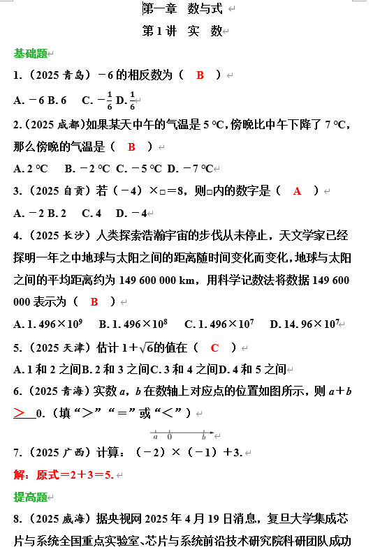 第一章+数与式++专项练习+++2026年中考数学一轮专题复习(河南)