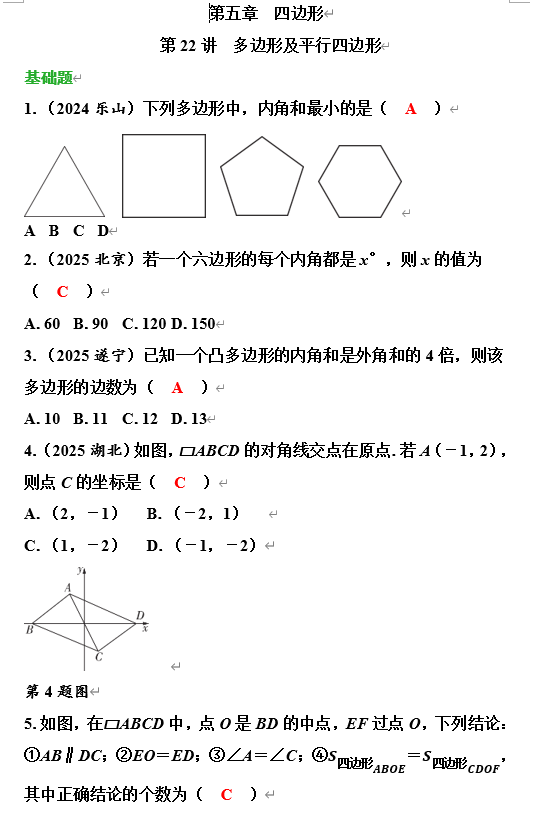 第五章++四边形+专项练习++2026年中考数学一轮专题复习(河南)