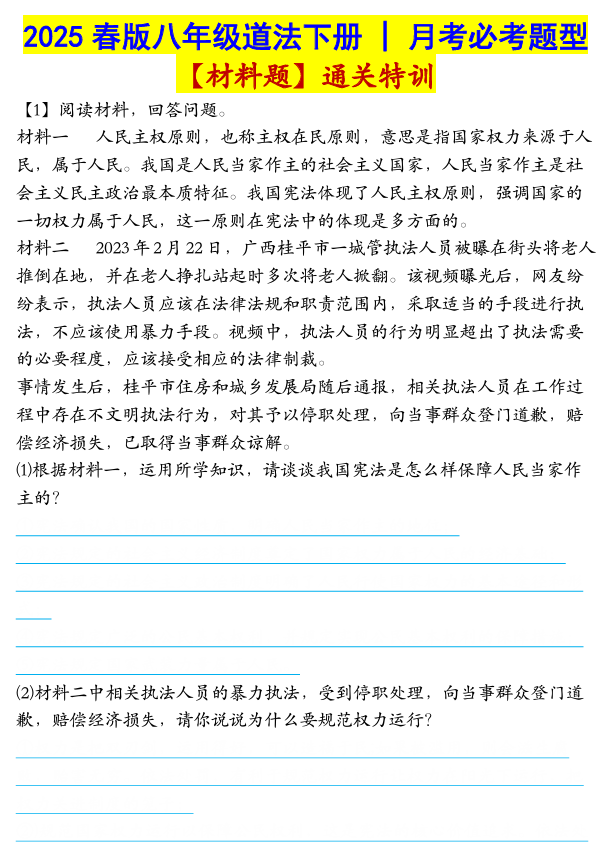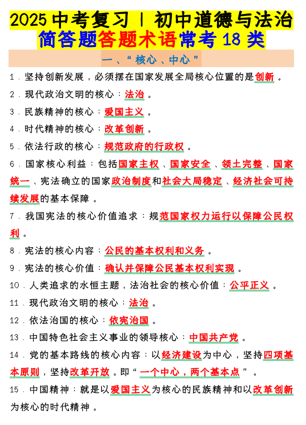 2025中考复习 _ 初中道德与法治:简答题答题术语常考18类