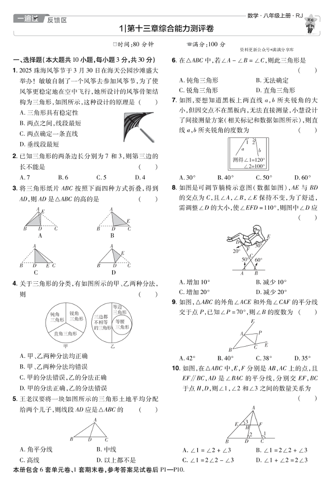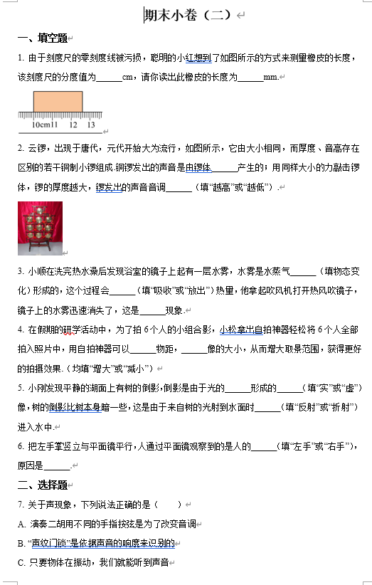 25版八上RJ物理试卷正文(教用)