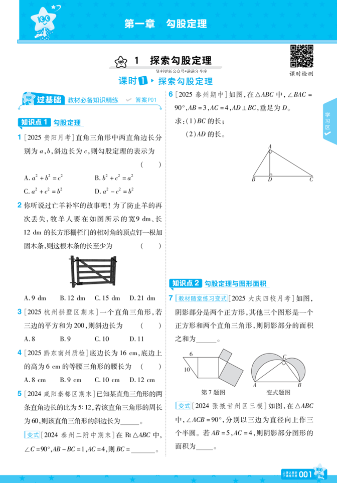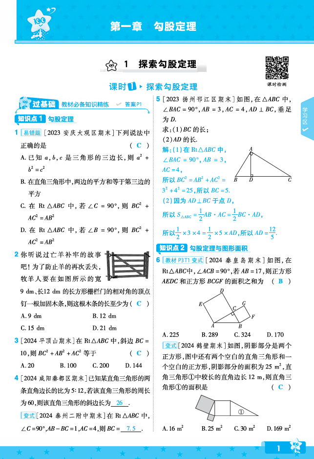 2024秋《一遍过》数学8年级上册北师版教师用书