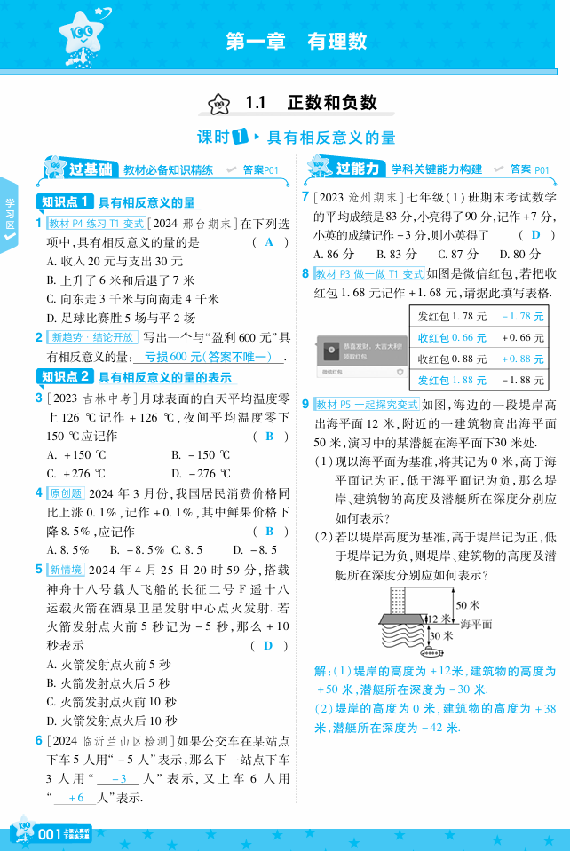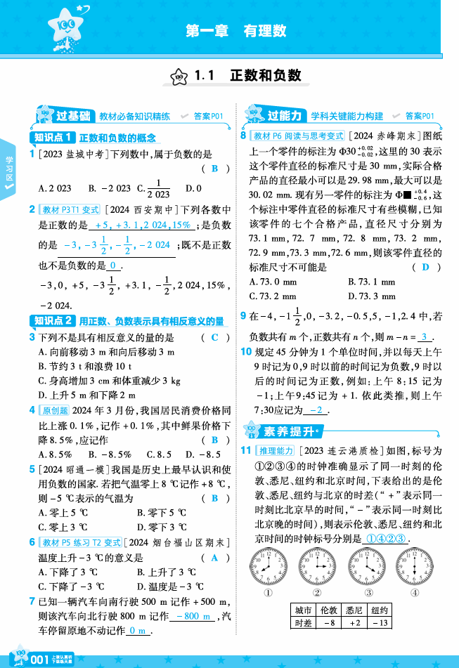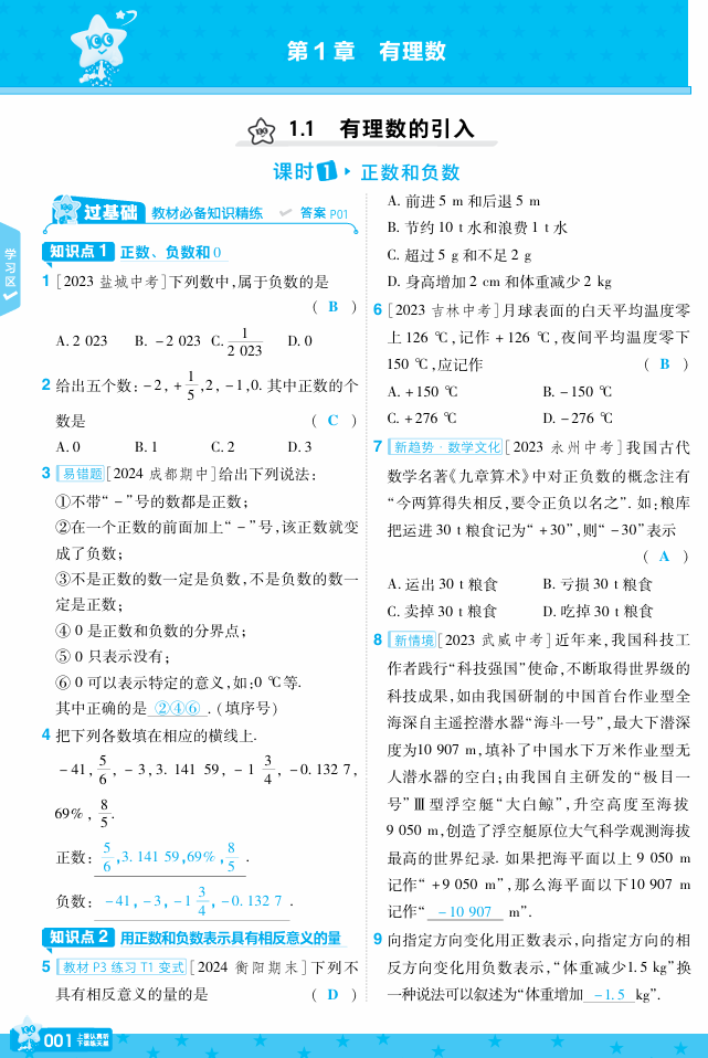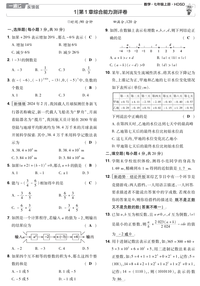 2024秋《一遍过》数学7年级上册人教版教师用书