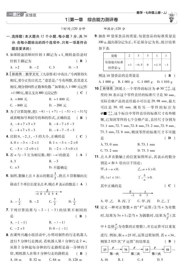 2025版+数学+七上+冀教(JJ)+试卷正文