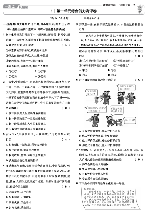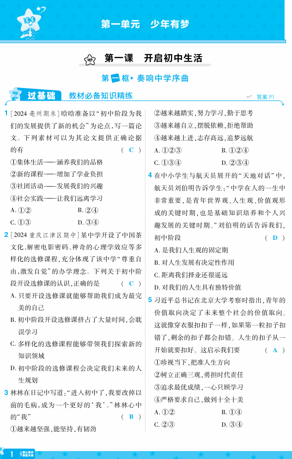 2025七上生物一遍过RJ《一遍过》练习册教案