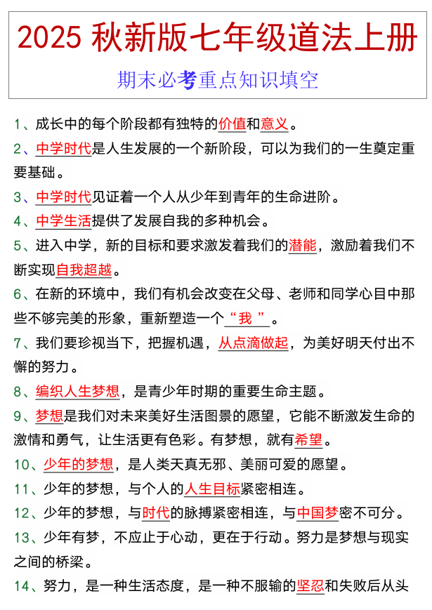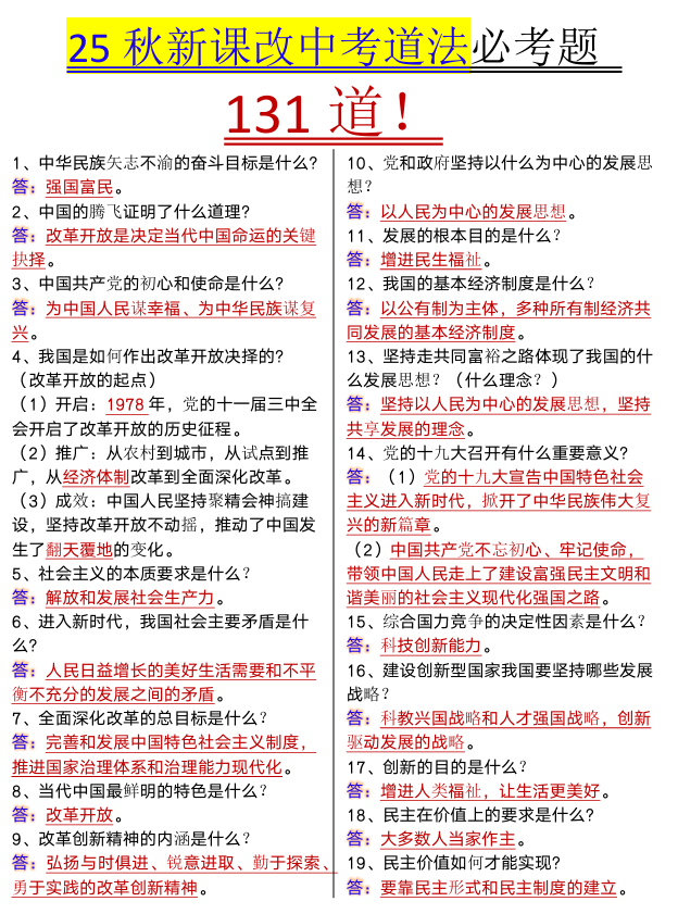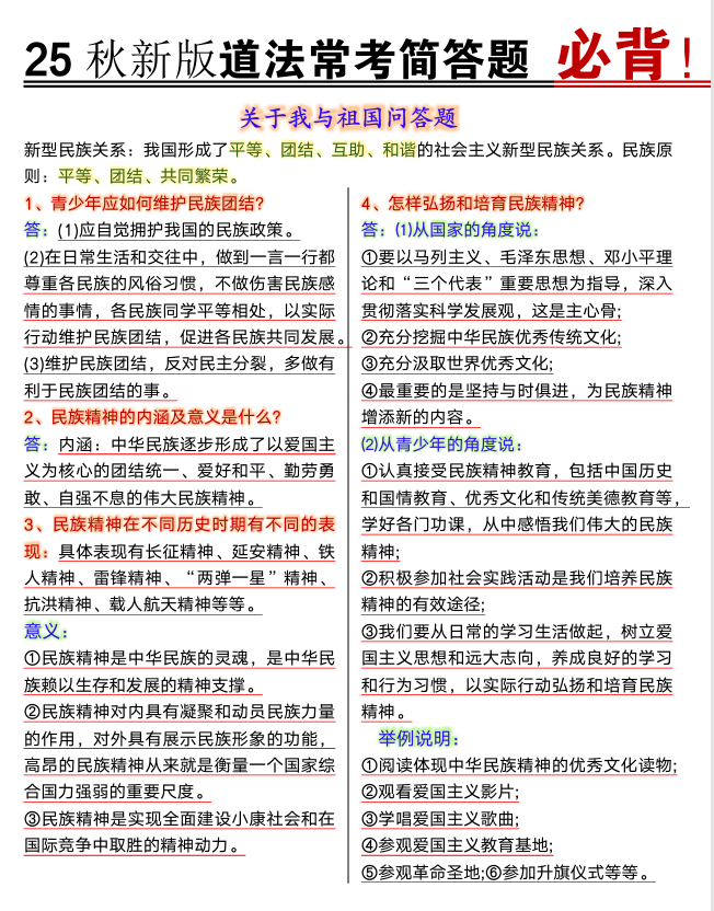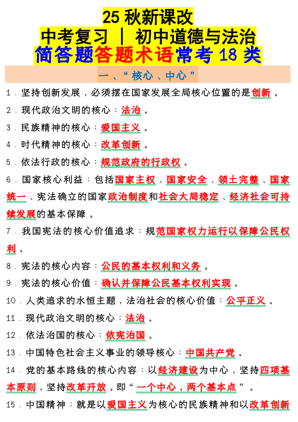【2025秋新版】中考复习 _ 初中道德与法治:简答题答题术语常考18类