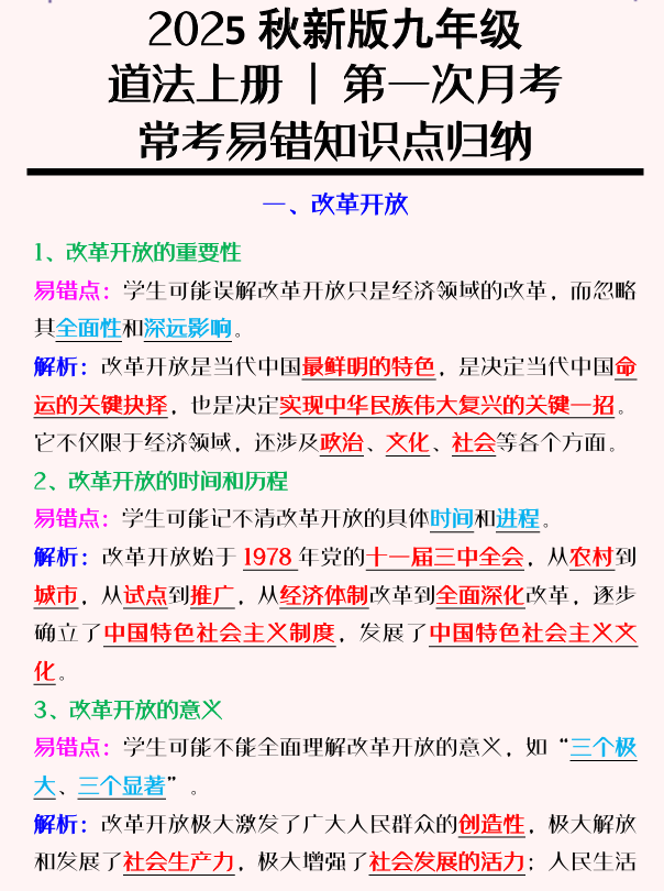 【2025秋新版】九年级道法上册 _ 第一次月考:常考易错知识点归纳